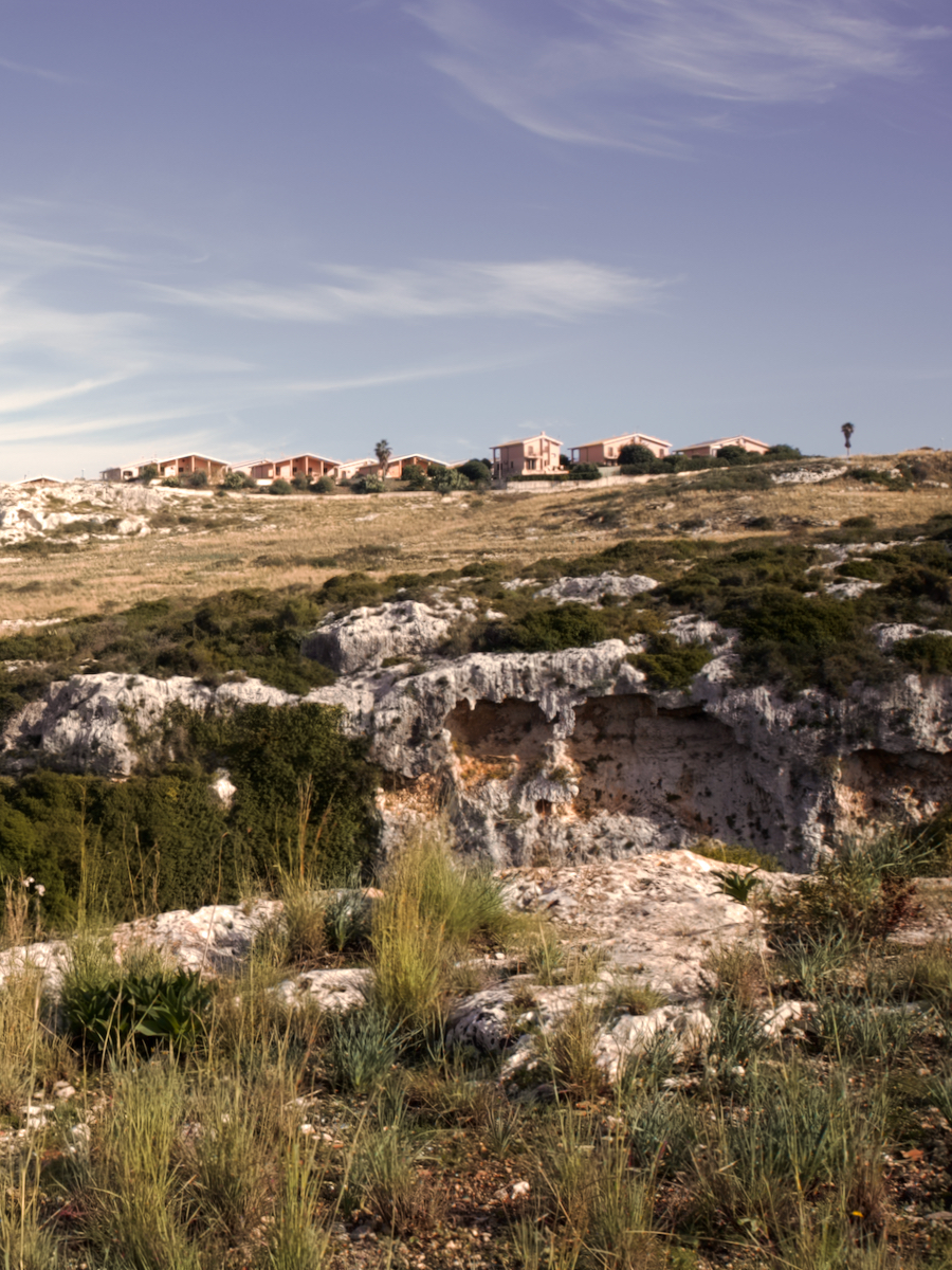 A nord si incontra l’estrema periferia della città, dove lungo un tratto di costa compreso tra l’area industriale e schiere di palazzi popolari, sorge un’area occupata da delle antenne VLF ad uso militare, da anni dismessa. Si tratta di un grande altopiano roccioso, dove il tempo sembra essersi fermato. La natura domina incontaminata, rivelando un’immagine del luogo ormai dimenticata, leggibile solo nella storia delle “latomie”, le grandi cave di roccia con le quali è stata costruita la storia della città. In questo luogo pieno di contraddizioni, l’ex linea ferrata a servizio dell’area industriale – oggi una lunga pista ciclabile che percorre la costa orientale fino a nord – scava un solco nel suolo e conduce alla riscoperta di una periferia che trova il suo riscatto in una qualità paesaggistica autentica e pregevole.